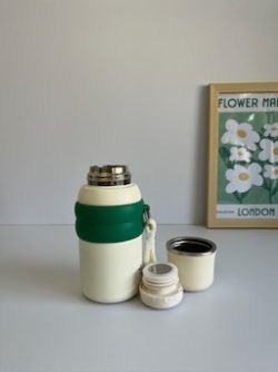- این فلاسک به معنای واقعی گوگولیه🥰 و با کیفیت که برای اینکه توی پیاده راحت دستتون بگیرید بند محکمی داره و سیلیکون دورش جلوگیری میکنه از لیز خوردن تو دست 😎